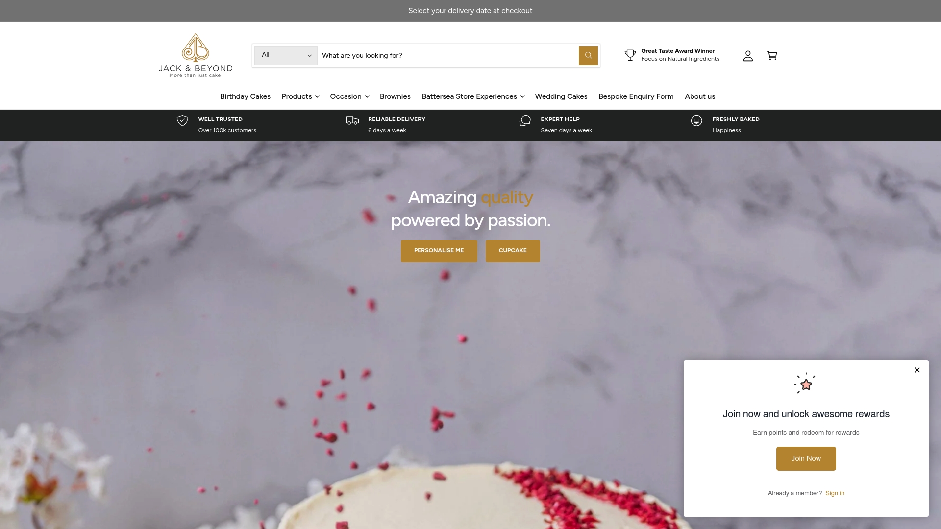 Jack and Beyond offers customizable celebration cakes and baked treats, nationwide delivery for many items, and UK shipping for select products. They focus on baking in house with natural ingredients and provide bespoke and wedding cake services alongside vegan and gluten free choices.